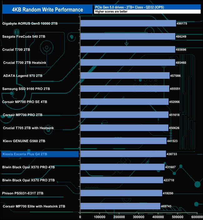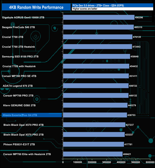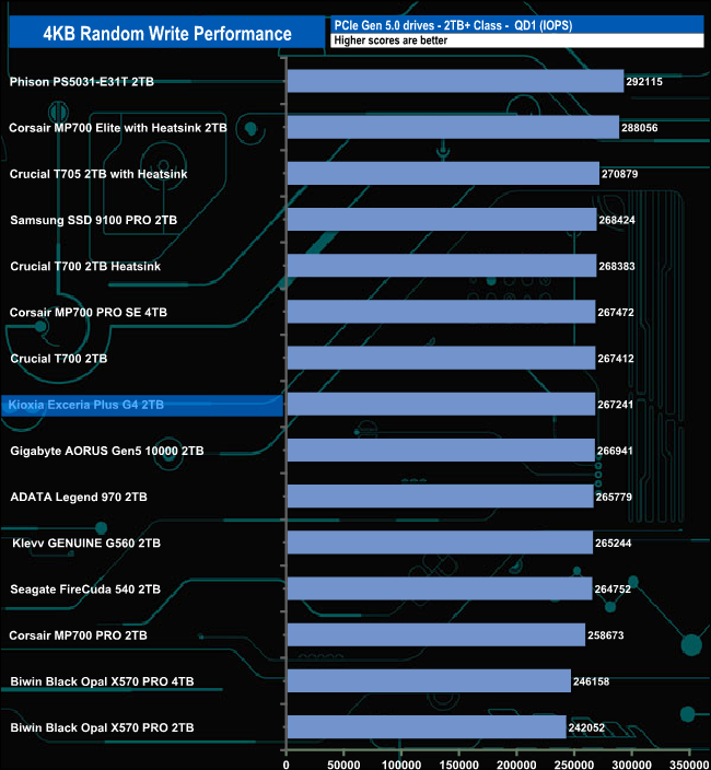 We used CrystalDiskMark 8‘s custom settings to test the 4K random write performance of the drive through a range of queue depths. The setup for the tests is listed below.