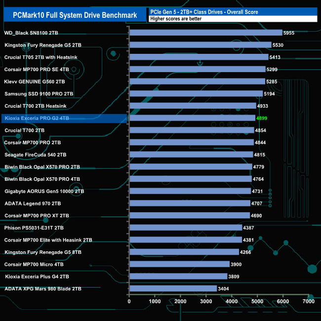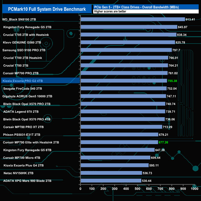 With an overall bandwidth score of 755.38MB/s, Kioxia's Exceria PRO 4TB drive sits in a mid table position.