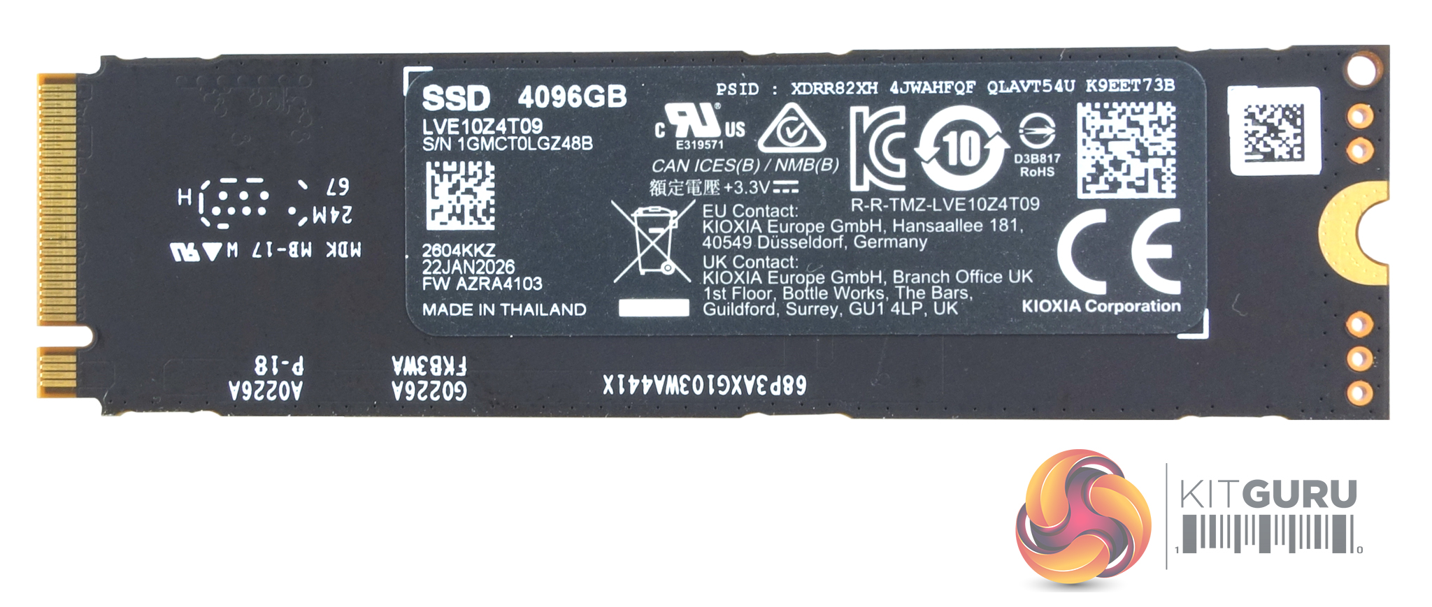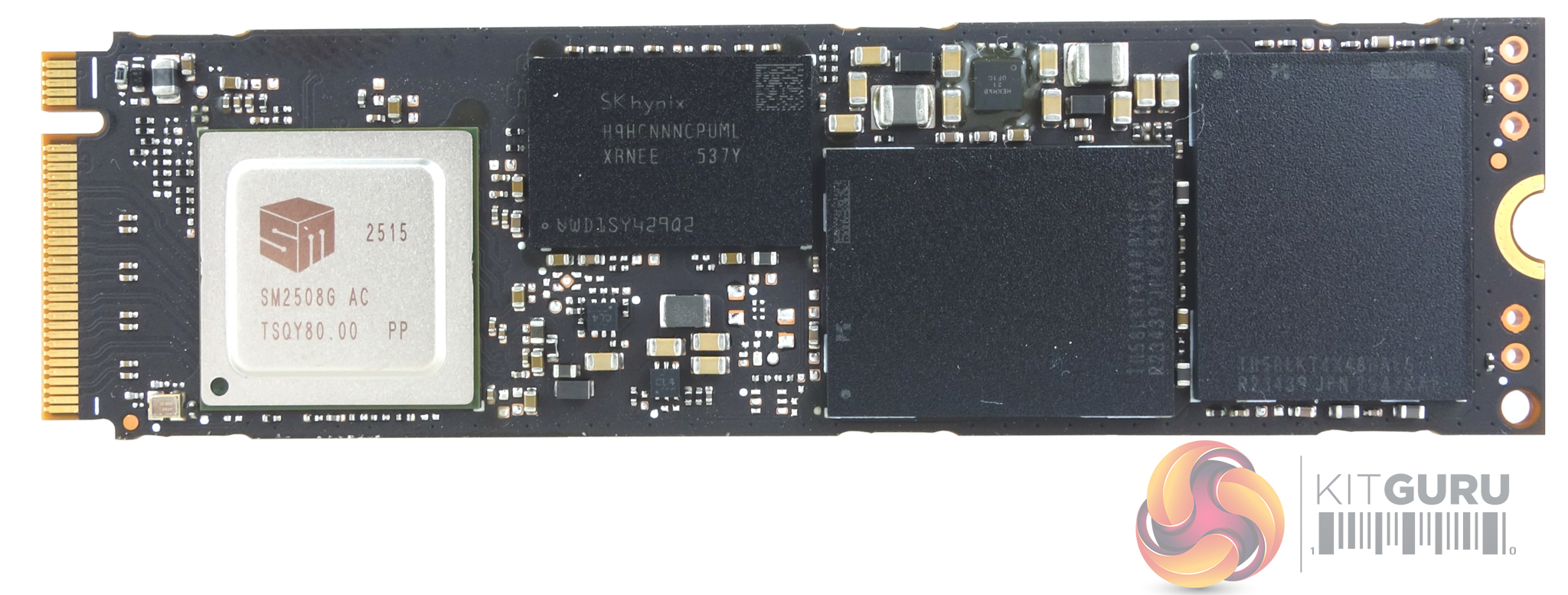 As the drive is a single-sided format, all the components are on one side of the PCB. Alongside the Silicon Motion SM2508 controller sit two 2TB packages of Kioxia BiCS8, 218-layer 3D TLC NAND and a DRAM IC (SK Hynix H9HCNNNCPUML).
