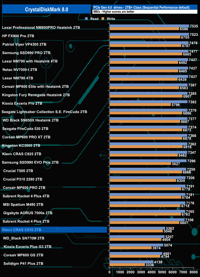 Those Sequential test results see the drive in the bottom half of the results chart but it is the fastest sub 7,000MB/s drive we've seen to date.