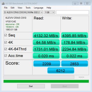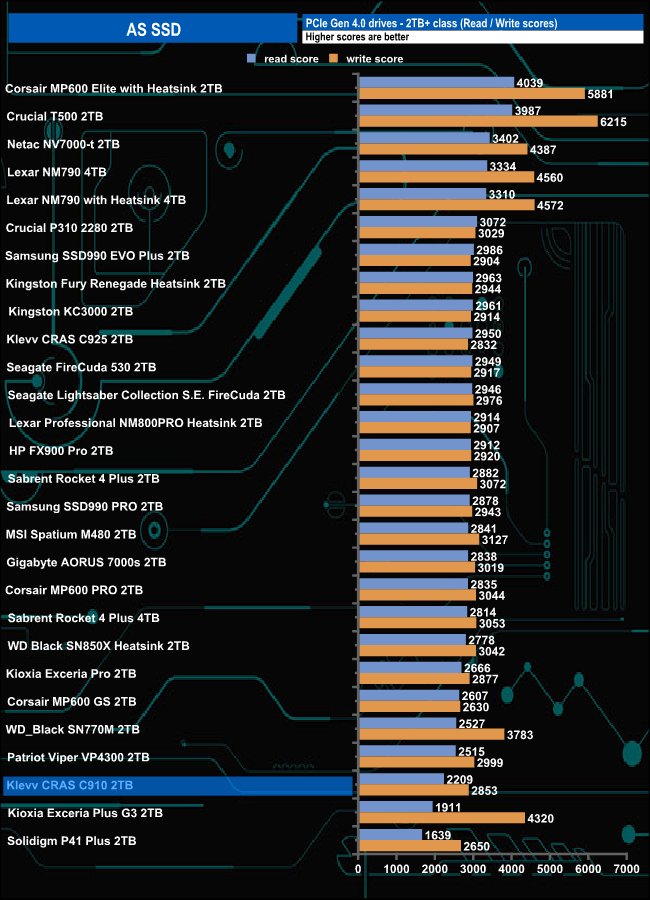 The 2TB CRAS C910 read score of 2209 sees the drive slot into the third from last spot on the results chart.