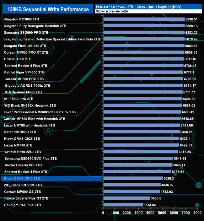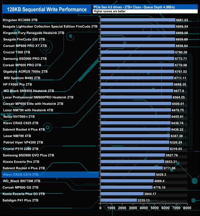 128KB Sequential Write performance compared.