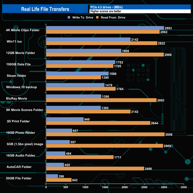 To get a measure of how much faster PCIe NVMe drives are than standard SATA SSD's we use the same files but transfer to and from a 2TB Kioxia Exceria Plus drive.