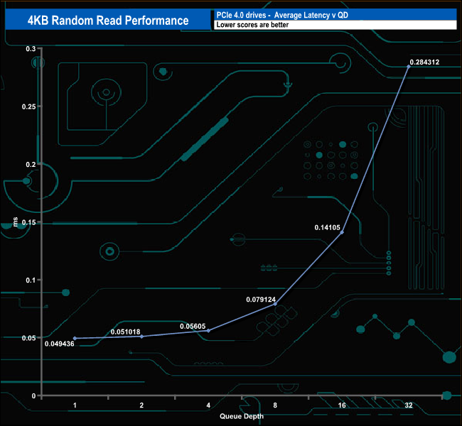 Although we couldn't get close to the official 4K random read figure, it is a consistent drive, as the test results we did get saw the drive in the top ten results for all the tested queue depths