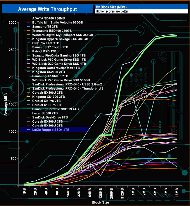 As with the read throughput test result, the peak write result of 2,754.71MB/s may be well short of the official maximum, but once again, it's the second fastest drive we've seen in this test.
