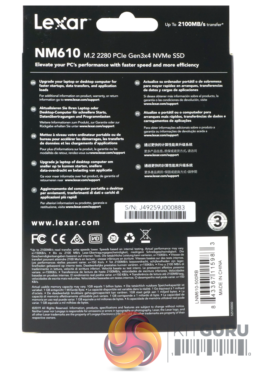 Like the NM600, the NM610 is a single-sided design with all the components housed on one side of the PCB. Making this layout easier to accomplish is the fact that the drive is a DRAM-less design so there is one less chunk of silicon to find a place for. At one end of the PCB, sitting on its own is the Silicon Motion SM2263XT controller while under the product label there are four packages of 64-layer 3D TLC NAND. We tried to prise the label off to see whose NAND the drive is using but whatever was used to attach the label works very well, as it refused to budge without tearing.