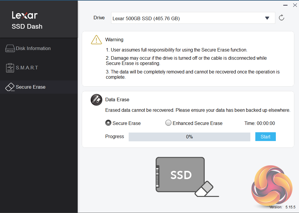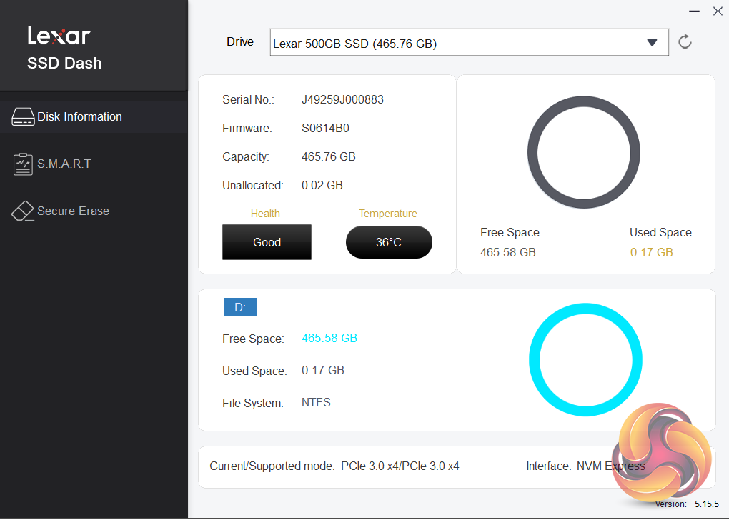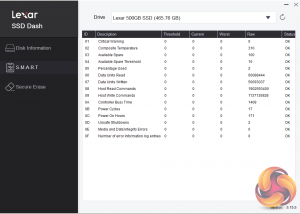 Lexar’s SSD utility goes under the name of SSD Dash. It’s not as fully featured as some of its competitor’s from, for example, Samsung or WD, but it does offer all the basic information you might need to keep an eye on your drive in an easy to understand way. It also supports Secure Erase.