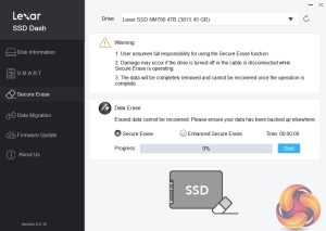 Lexar’s SSD management utility is called SSD Dash. It’s not as fully featured or flashy as some of its competitors, but it does offer all the basic information you might need to keep an eye on your drive in an easy-to-understand way, plus supporting Secure Erase and data migration functions.