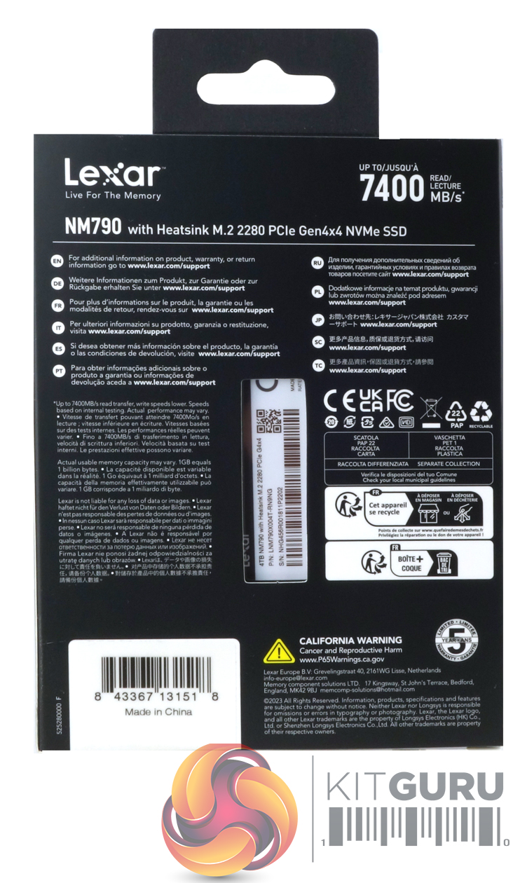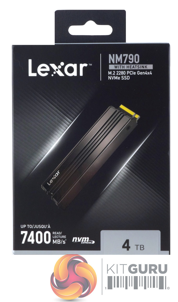 Lexar's NM790 comes in a black and silver finished box with a clear image of the drive on the front. Above the image and to the right, the drive's name is printed in silver which makes it stand out. Below the image of the drive is the Sequential read speed rating and to the right of this is a sticker highlighting the 4TB capacity.