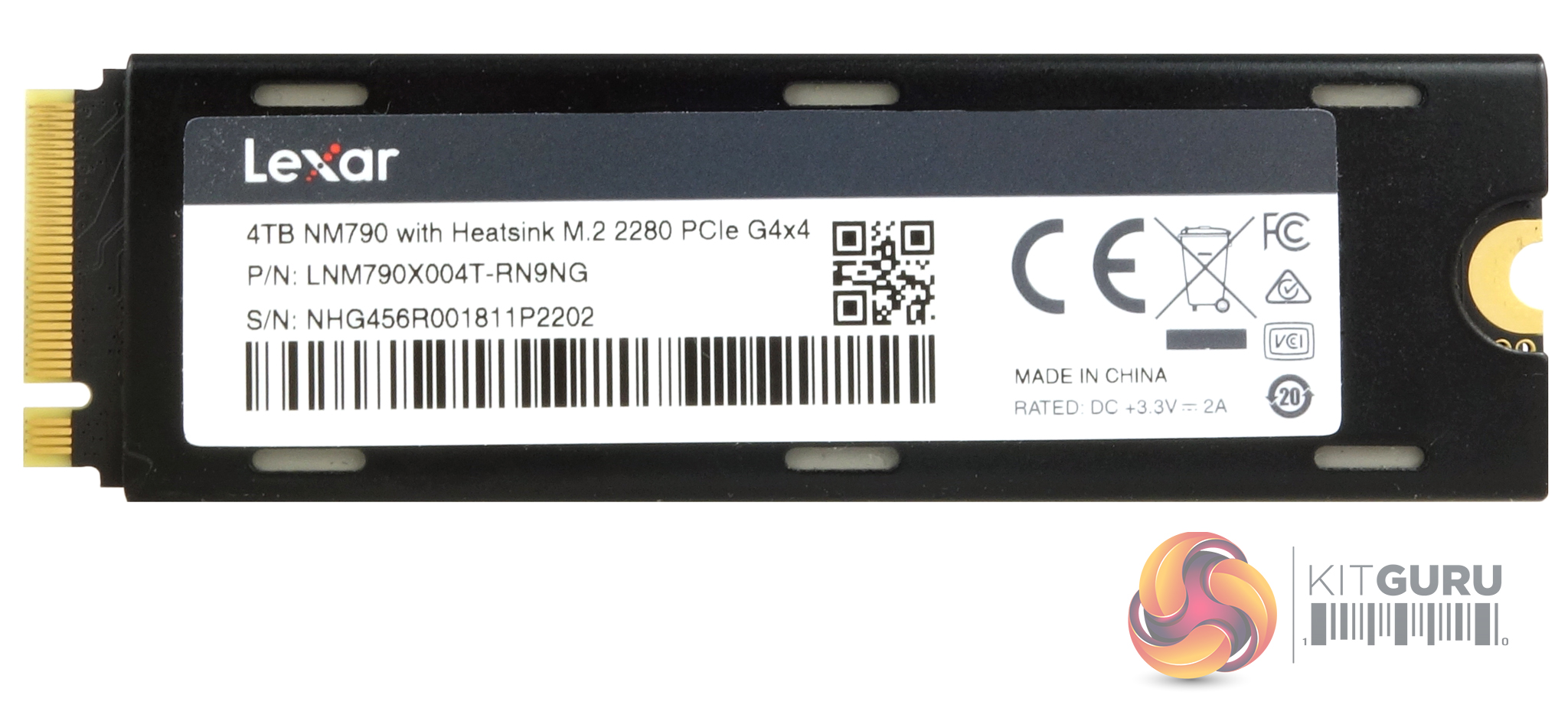 Lexar's NM790 with Heatsink drive is built on a single-sided M.2 2280 format. The heatsink adds 2mm to the width of the standard drive and around 7mm to the height.