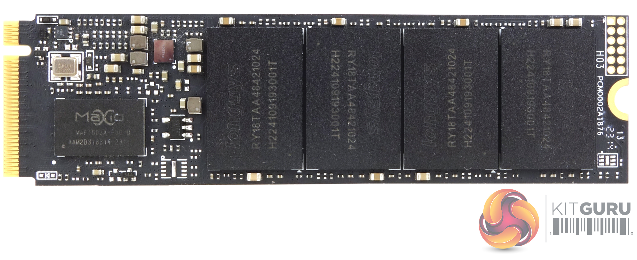 Being a single-sided design, all the major components sit on one side of the PCB. Nearest the interface is the Maxiotech MAP1602A controller and then there are four packages of 232-Layer 3D TLC NAND (coded Longsys RY18TAA48421024). As the MAP1602A is a DRAM-less design that is pretty much it for the major components on the PCB.
