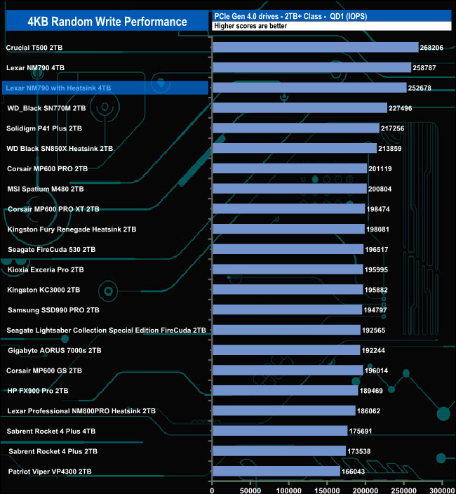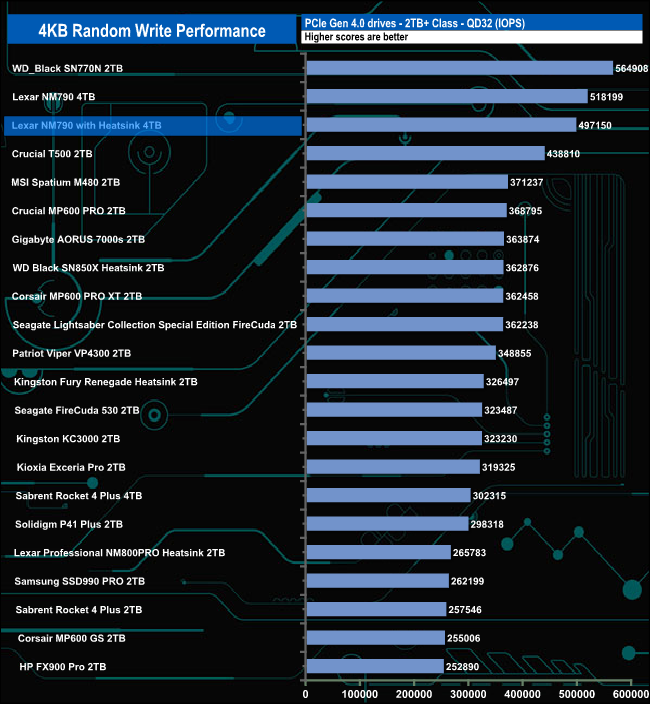 At QDs 1, 4 and 32, the Lexar NM790 with Heatsink sits in third place on the results chart while at QD2 it drops a place to fourth.
