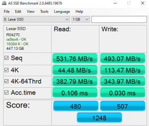 AS SSD is a great free tool designed just for benching Solid State Drives. It performs an array of sequential read and write tests, as well as random read and write tests with sequential access times over a portion of the drive. AS SSD includes a sub suite of benchmarks with various file pattern algorithms but this is difficult in trying to judge accurate performance figures.