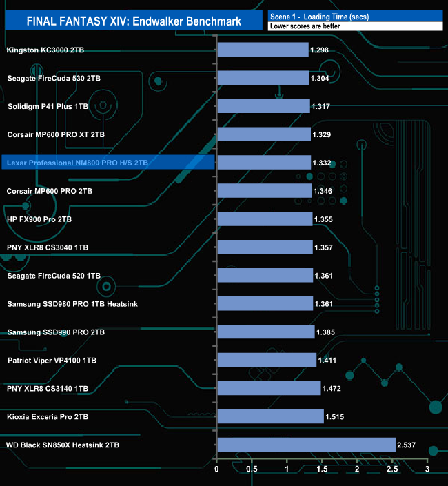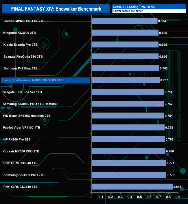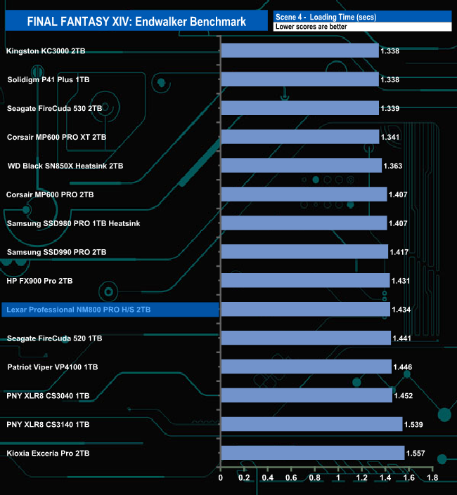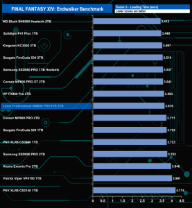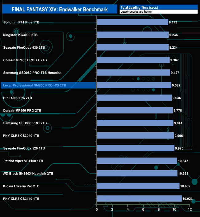 The Lexar Professional NM800 Pro Heatsink total load time of 9.582 seconds is slightly faster than the other InnoGrit IG5236 controller-equipped drive, HP's FX900 Pro.