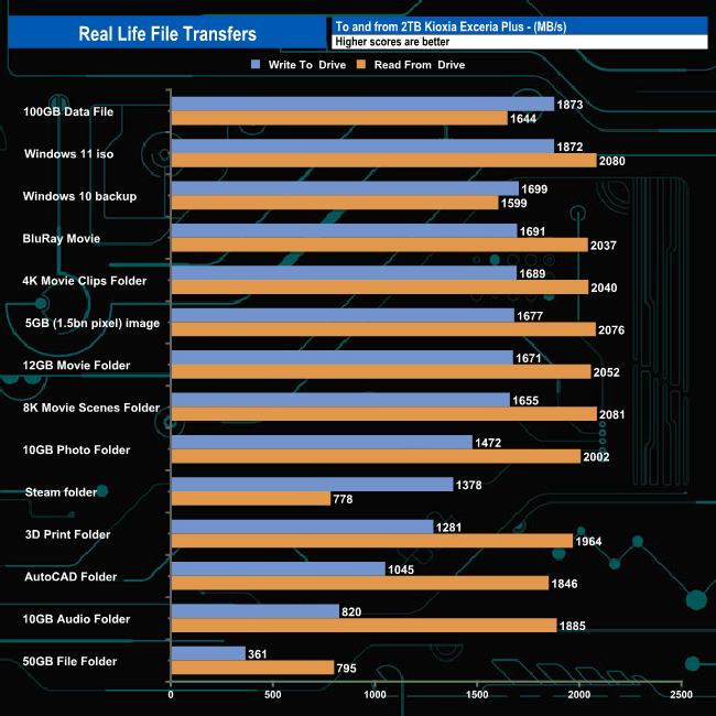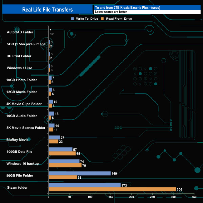 To test the real-life performance of a drive we use a mix of folder/file types and by using the FastCopy utility (which gives a time as well as MB/s result) we record the performance of drive reading from & writing to a 2TB Seagate FireCuda 510.