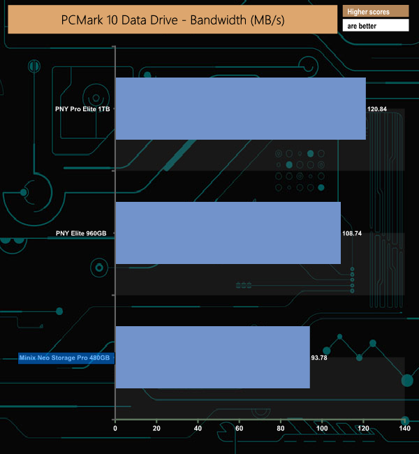 We've just started using the PCMark 10 Data Drive Benchmark test for external drives, so these charts will get more results added to them from now on.