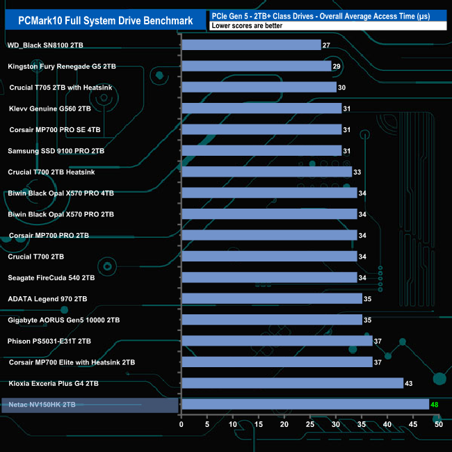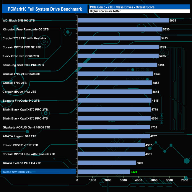 Overall, the Netac NV150HK doesn't seem to handle the PCMark10 benchmark too well; its overall bandwidth figure of 536.73MB/s sees it firmly at the bottom of the results chart.