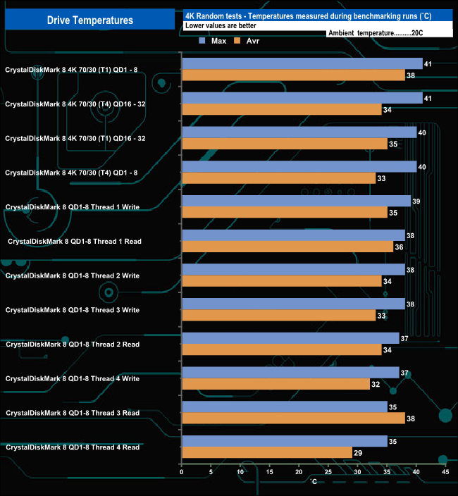 We took note of the drive’s temperature during some of our benchmarking runs.