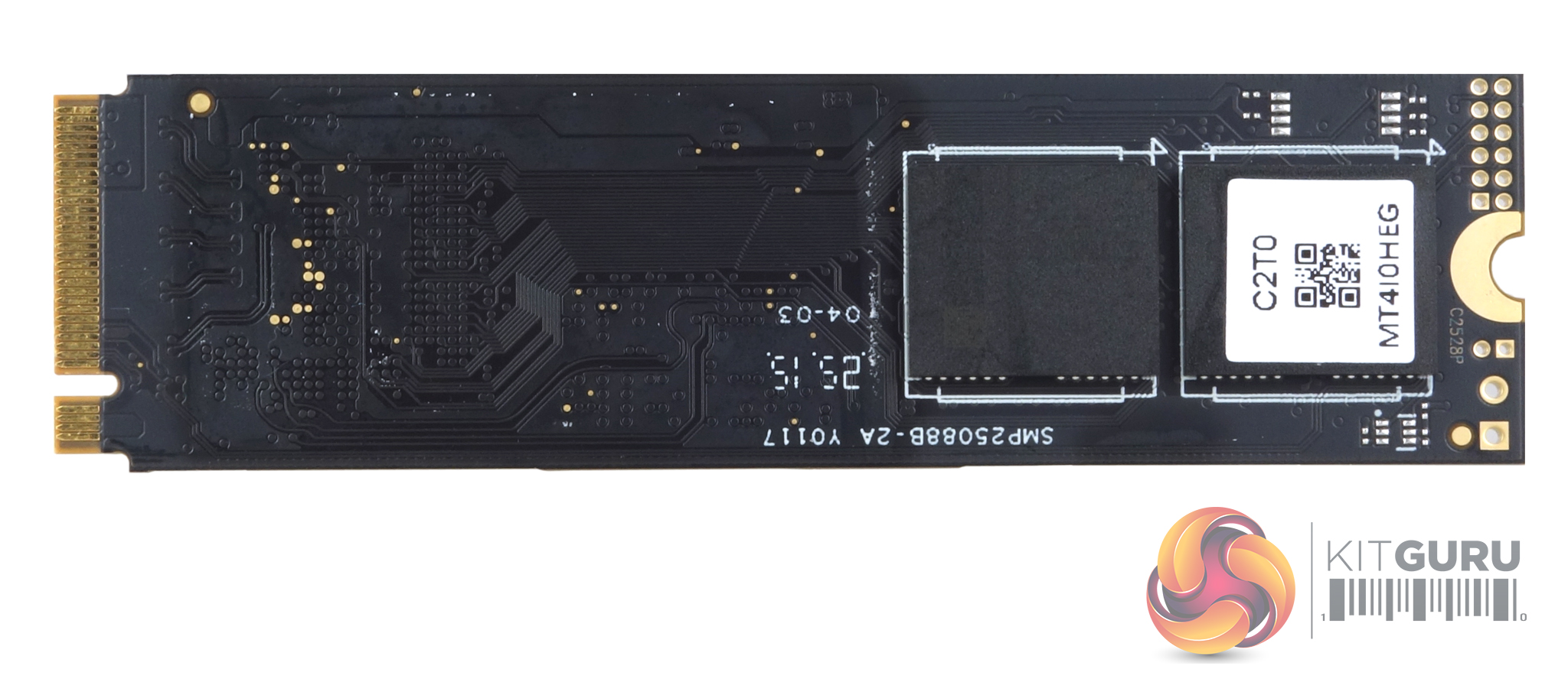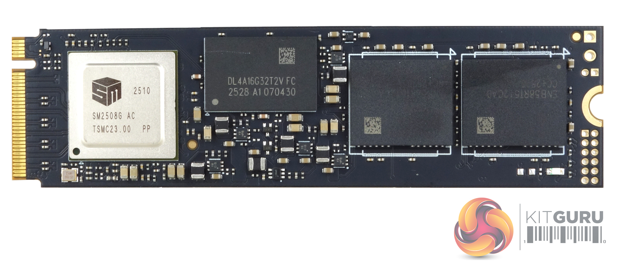 One side of the PCB holds the Silicon Motion SM2508 controller, a 2GB LPDDR4-2133MHz DRAM cache IC and two packages of 232-layer NAND. The other side of the PCB is home to another two packages of NAND.