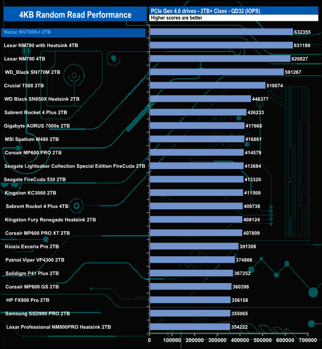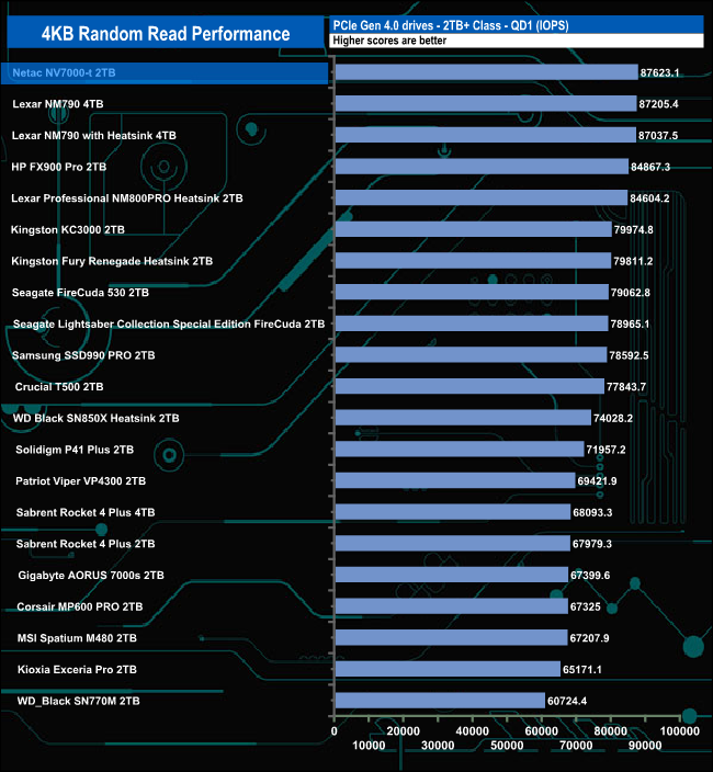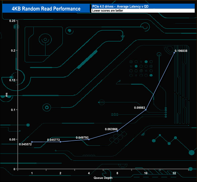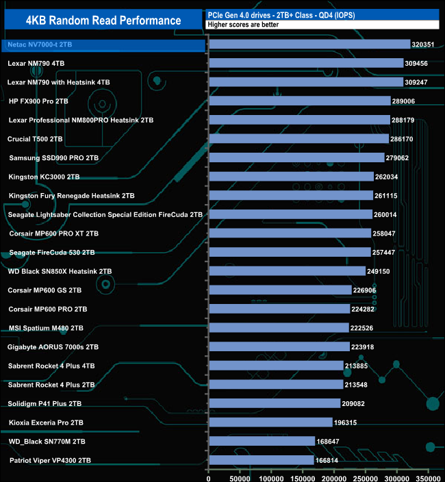 Although we couldn't get close to the official 4K random read figure, the test results we saw make the Netac NV7000-t the fastest Gen 4 drive we've seen to date at every tested queue depth.
