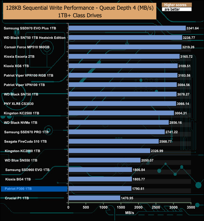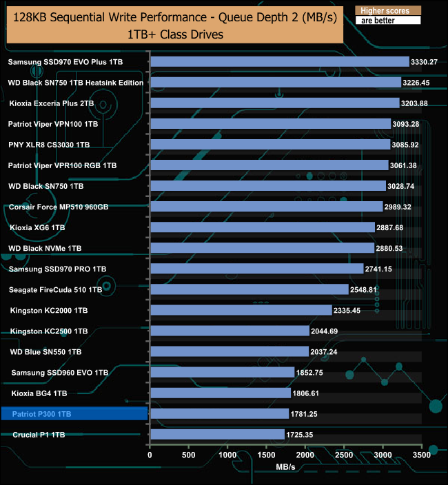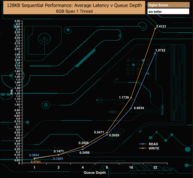 128KB Sequential Write Performance v QD