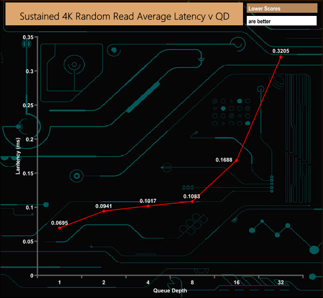 The drive appeared to perform the best in relation to the other drives around it in our results charts at both ends of the spectrum, that's to say queue depths 1 and 32. At other tested QDs, the drive seems to drop back a little.