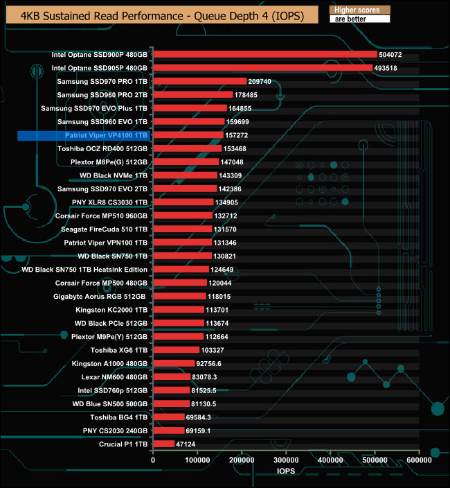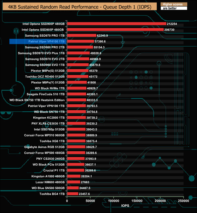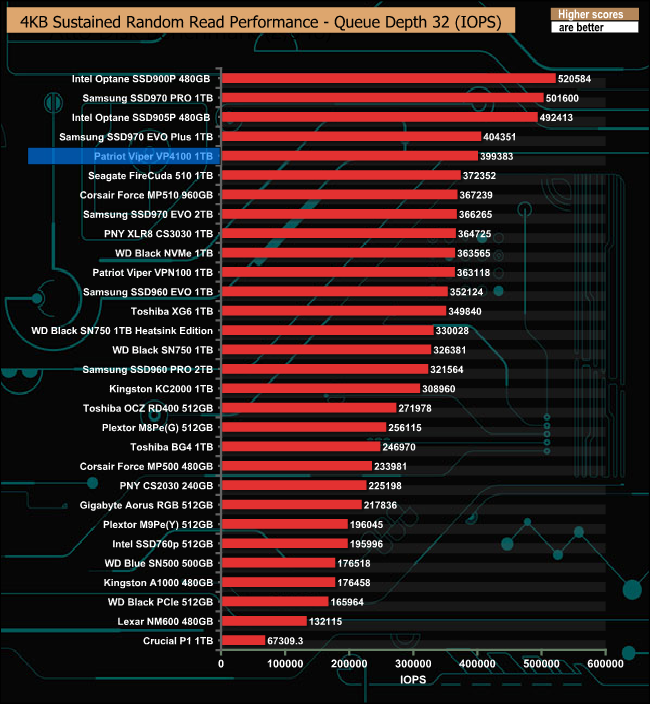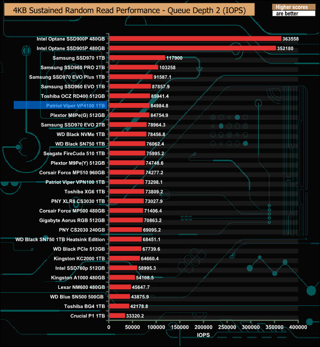 In stark contrast to the official 800,000 IOPS 4K read performance, the fastest figure we saw from the drive in our four threaded tests was 399,383 IOPS.