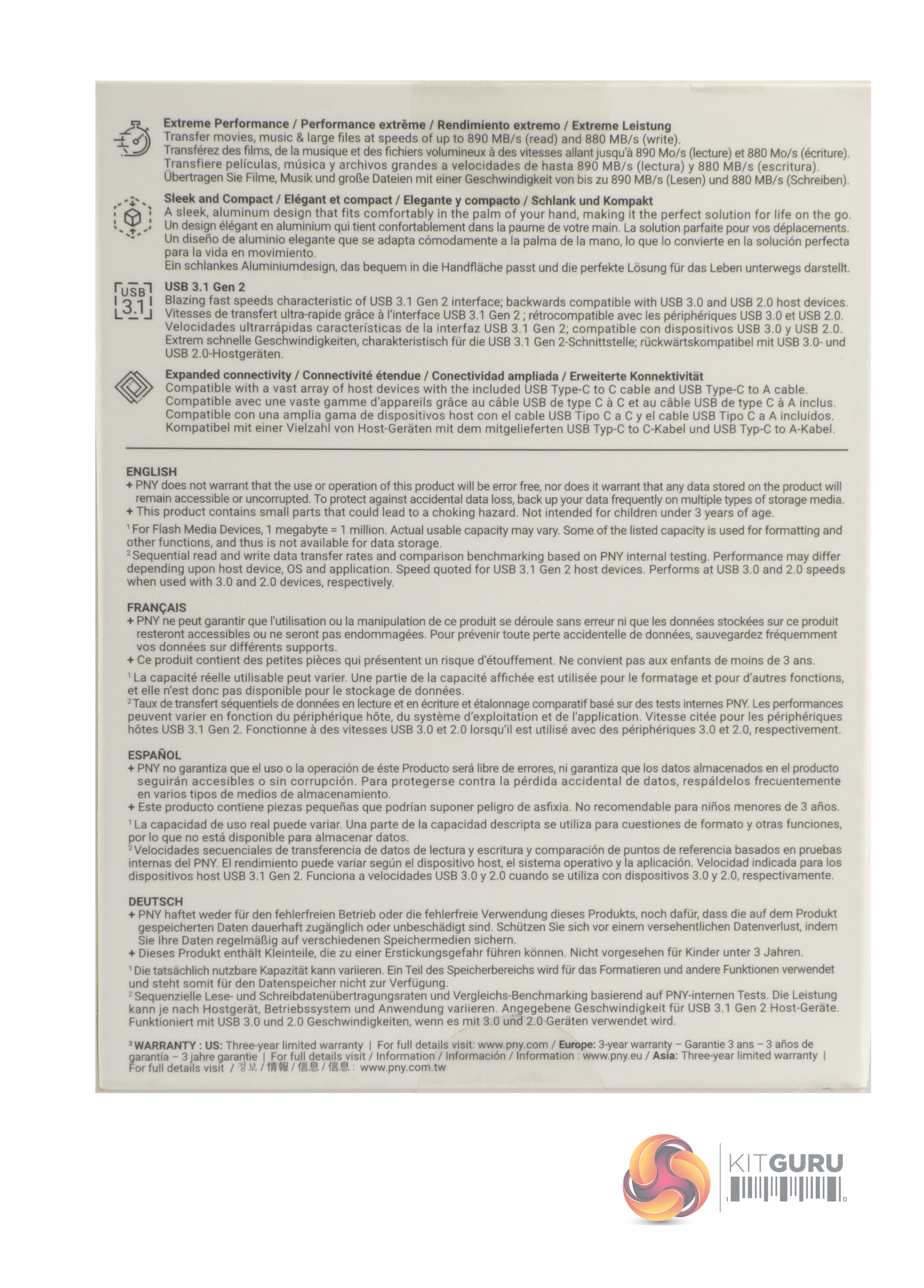 The rear of the box has some small multi-lingual lists of some of the drive's features and some general information regarding usage.