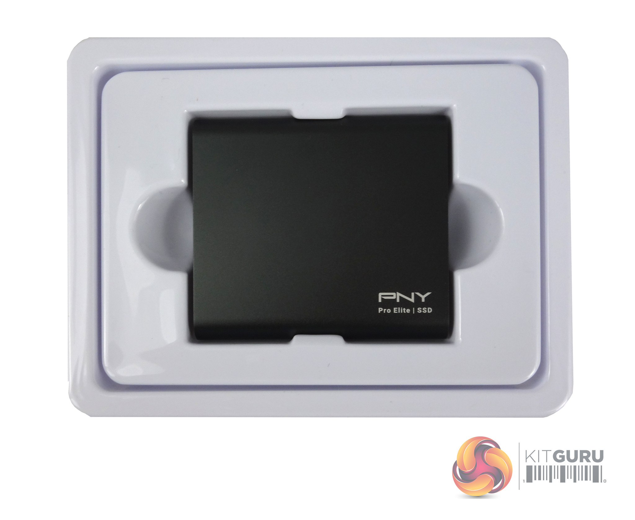 The drive sits in a plastic tray inside the box, under which you will find the two bundled cables; USB-C 3.1 to USB-C 3.1 and USB-C 3.1 to USB-A 3.1, both of which are on the short side. Also bundled in with the drive is a serial number for Acronis True Image, which can be downloaded from the PNY website.