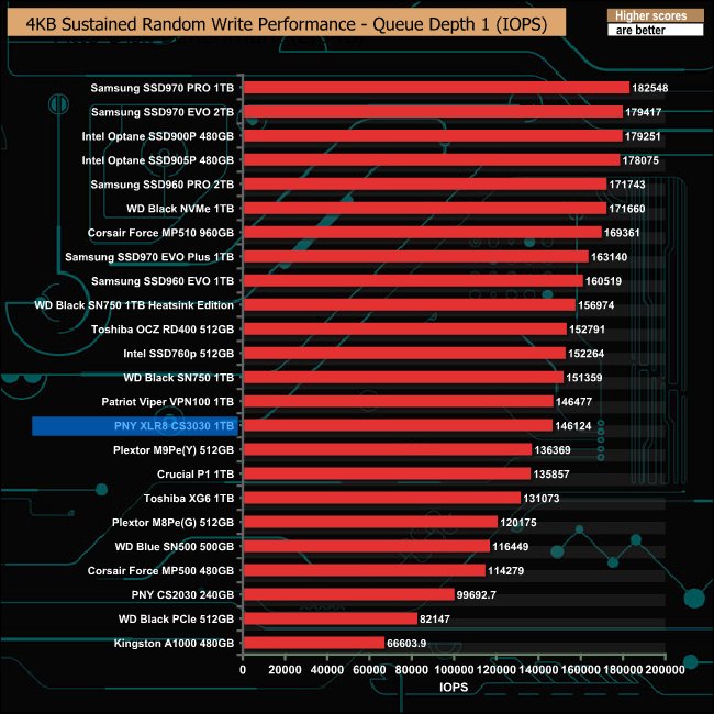 In our 4K random tests, the drive peaked at 198,729 IOPS at a queue depth of 2.