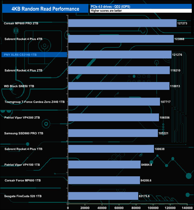 PNY doesn't put any random performance figures on any specification sheets we have seen for comparison with our test results. The best figure we saw in our 4-threaded testing was 357,730 IOPS (QD32). Between QDs 8 and 16, the performance appears to dip slightly before recovering well.