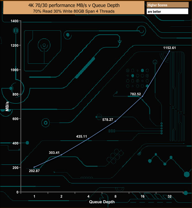 Sabrent's Rocket 4 Plus displays strong performance in our 70/30 read/write mixed test.