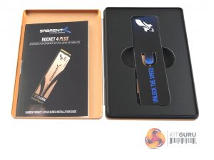 The Rocket 4 Plus comes in a diminutive box which weighs a lot more than you'd expect. The front of the box has an image of the drive with the capacity displayed in the bottom right-hand corner. The rear of the box carries a different view of the drive along with the drive's product number.