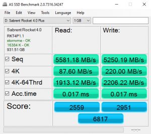 The drive's AS-SSD read score of 2,559 puts it into third place in our results chart. But it does have the second-best write score we've seen to date – 2,951, which is a tiny bit behind WD's Black SN850 but a good deal faster than Samsung's SSD980 PRO.