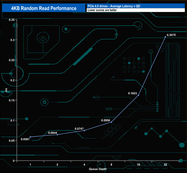 Sabrent quote a maximum 4K random read figure for the drive of 650,000 IOPS. The best we saw from the drive using our own 4-threaded tests was 409,738 IOPS (1,678.29 MB/s) at a QD of 32.
