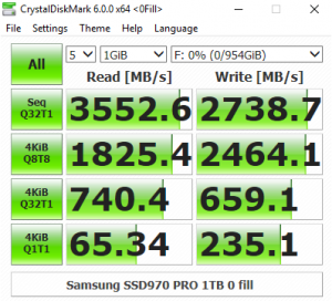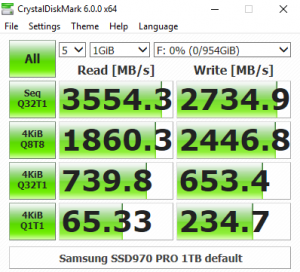 CrystalDiskMark is a useful benchmark to measure theoretical performance levels of hard drives and SSD’s. We are using v6.0