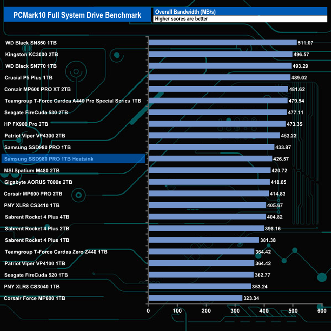 The PCMark 10 Full System Drive Benchmark uses a wide-ranging set of real-world traces from popular applications and common tasks to fully test the performance of the fastest modern drives. The benchmark is designed to measure the performance of fast system drives using the SATA bus at the low end and devices connected via PCI Express at the high end.