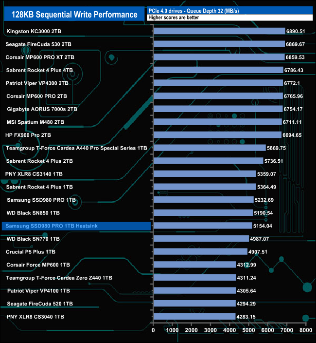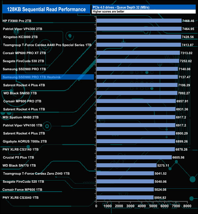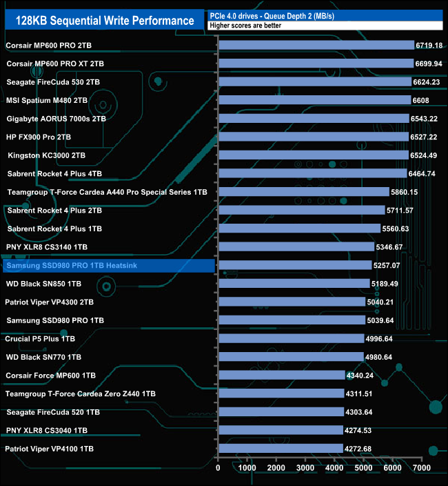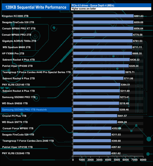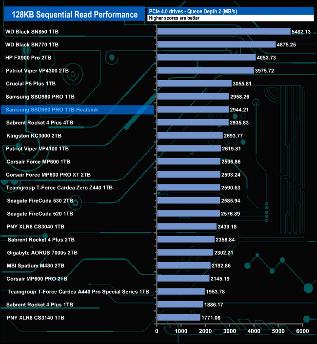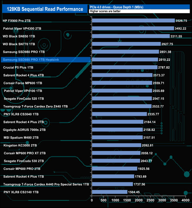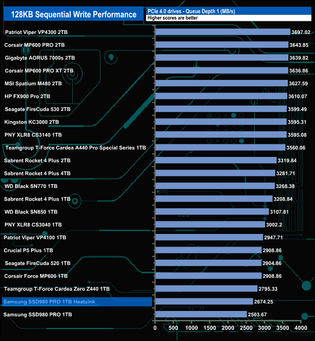 The 980 Pro Heatsink version shadows the standard 980 Pro throughout our Sequential read QD testing.