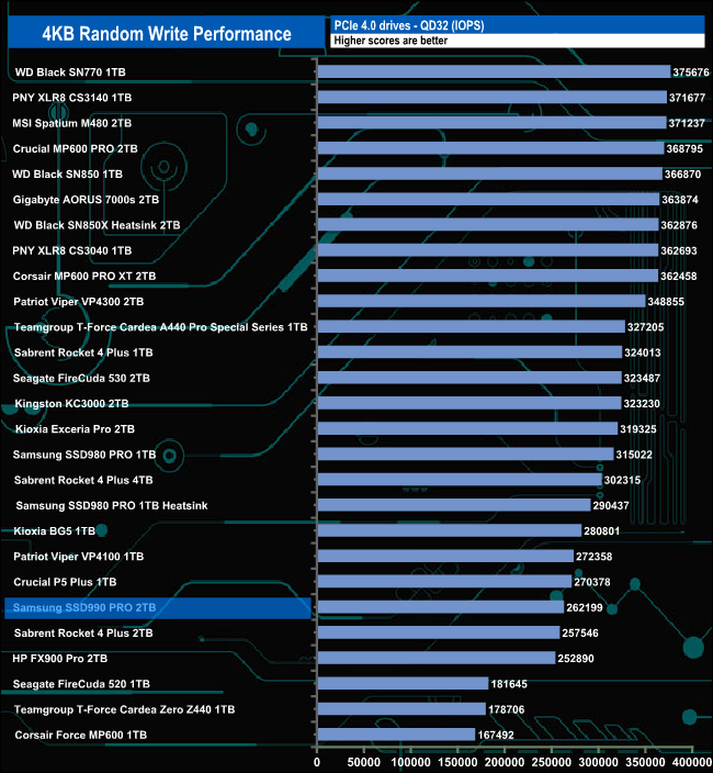 At shallower queue depths the drive sits in the top ten in our results chart but as the queue depth deepens the drive drops down the chart, eventually ending up in the bottom ten with the QD32 result of 262,199 IOPS.