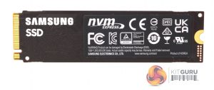 The 1TB SSD 980 is built on a single-sided M.2 2280 format PCB. Under the long product label on the top of the drive sits the Samsung Pablo controller (which has a nickel coating to help with heat dissipation) and a single package of Samsung’s 6th generation 1** layer 3-bit MLC (TLC) V-NAND. The sticker on the rear of the drive has a built-in copper layer to also help get rid of some of the heat generated by the drive when working.