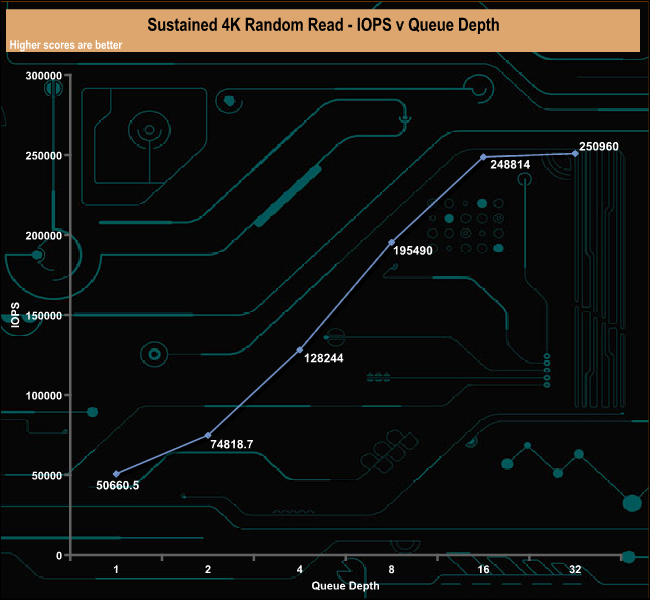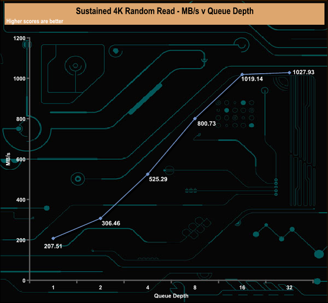 At QD1, the drive is the third-fastest we've seen to date but as the tested queue depths deepen the drive sinks further down the result's charts.