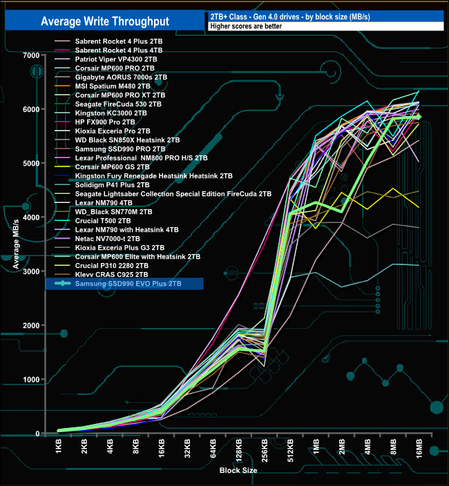 That write test result of 5,855MB/s sees the drive in the bottom half of the results chart.