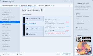 Drive Management Provides drive information, a performance benchmark, diagnostic scans, performance optimisation and Over Provisioning.