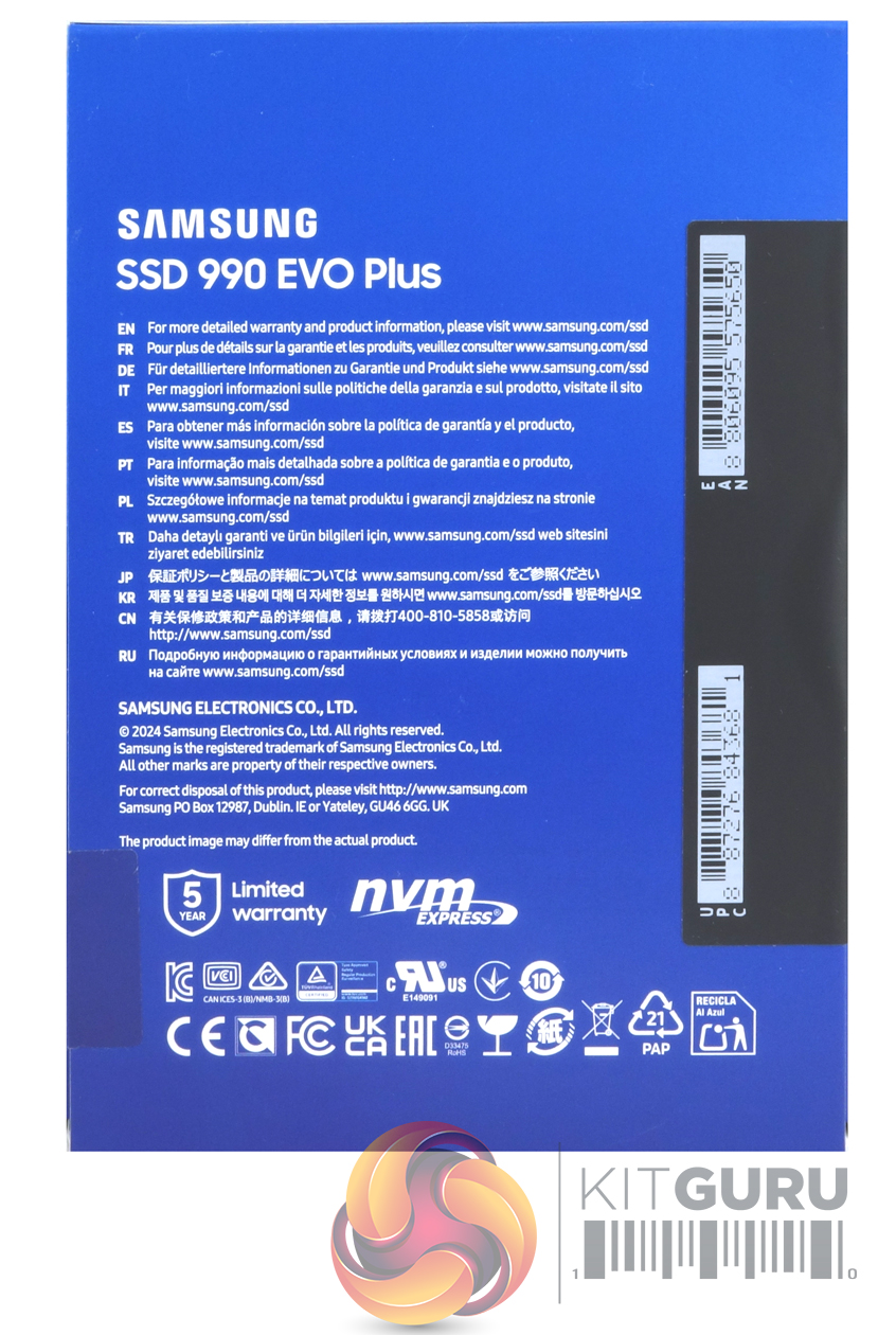 Samsung's 2TB SSD990 EVO Plus is built on a single-sided M.2 2280 format. The product sticker on the rear of the drive has a built-in copper layer to help get rid of some of the heat generated by the drive when working as does the nickel coating on the controller both working in conjunction with Samsung’s DTG (Dynamic Thermal Guard) algorithm.