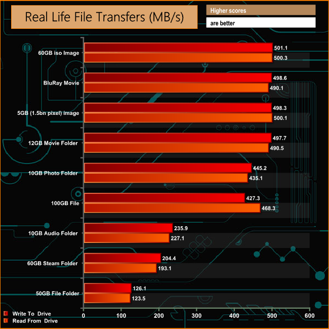 The SSD860 PRO shows strong read/write performance for the majority of our real life tests although it did seem to struggle somewhat with the 10GB Audio, 50GB File and 60GB Steam folders.