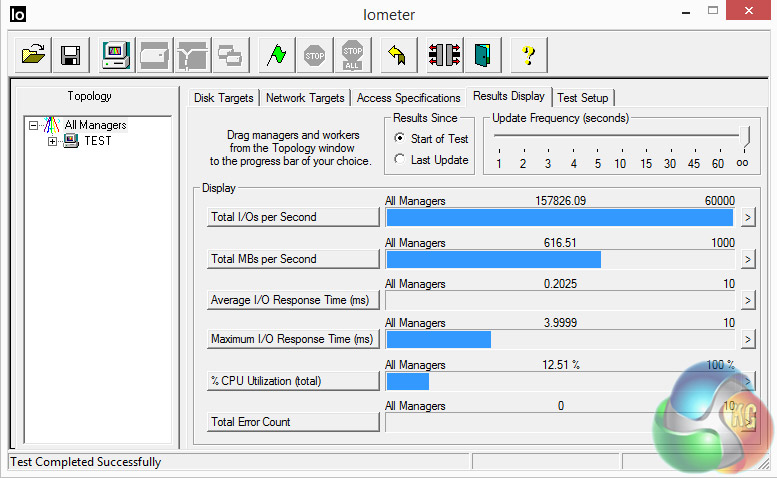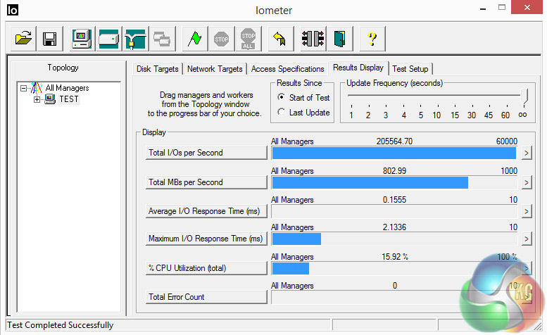 In the IOMeter 4K random tests, the drive produced a read score of 205,564 IOPS and writes came in at 157,826 IOPS which fall somewhere in-between the two sets of official figures for the drive.