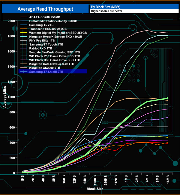 With its combination of a Samsung NVMe SSD and USB 3.2 Gen 2 interface, the T7 Shield is a fast performing external drive. Its read/write results of 980.81MB/s and 1,013.01MB/s respectively make it the fastest USB 3.2 Gen 2 consumer external drive we’ve seen to date in our throughput tests.