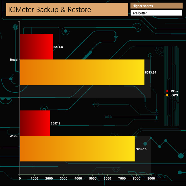 We set IOmeter up (as shown above) to test both backup and restore performance on a 100GB file.