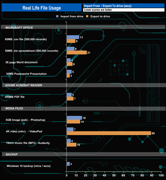 We also timed moving a Win 10 backup file to and from the drive.