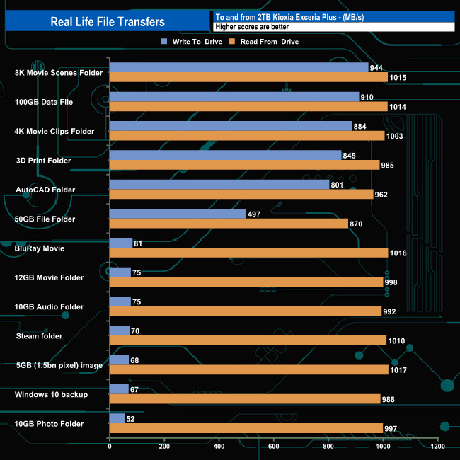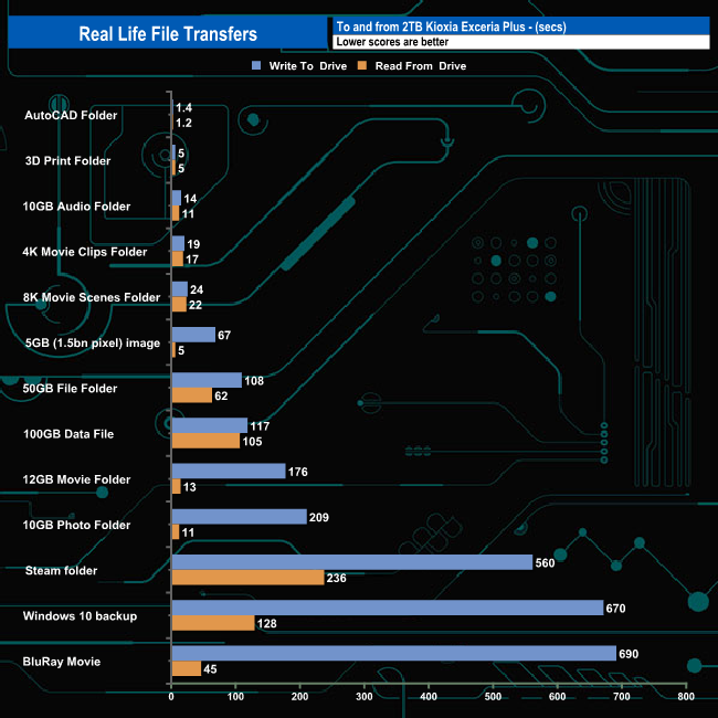 To test the real-life performance of a drive we use a mix of folder/file types and by using the FastCopy utility (which gives a time as well as MB/s result) we record the performance of drive reading from & writing to a 2TB Seagate FireCuda 510.